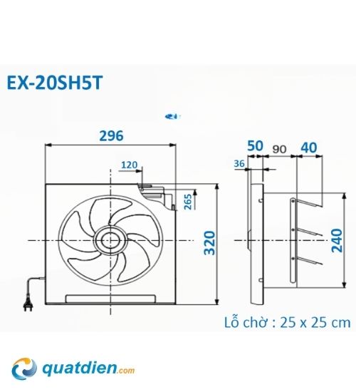 • Kích thước chừa lỗ tường: 25cm